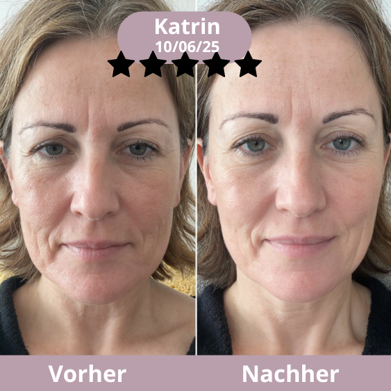 Ergebnis: Ein definierteres Gesichtsoval, eine festere, strahlendere Haut – und dieses frische Morgen-Glow, das Ihr Selbstvertrauen zurückbringt.