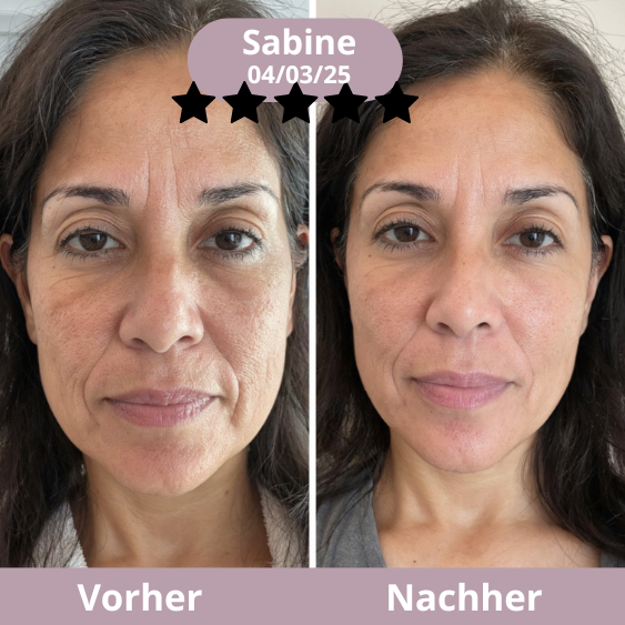 Falten und Erschlaffung verschwinden nach und nach, die Haut erscheint fester, glatter und strahlender, mit einem jugendlichen, natürlichen Glow.