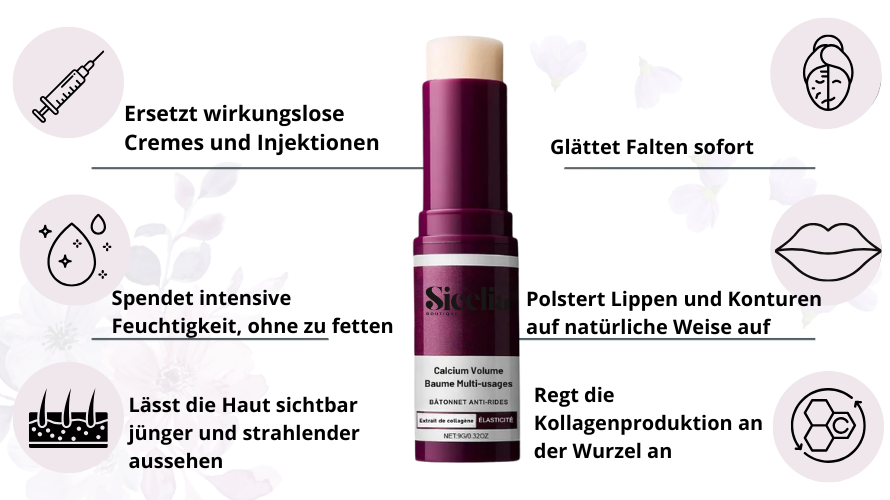 Der Sicelia-Balsam aktiviert die natürlichen Kalzium- und Kollagenreserven Ihrer Haut neu, um sichtbar Falten zu glätten und das Gesicht bereits nach 14 Tagen zu straffen.